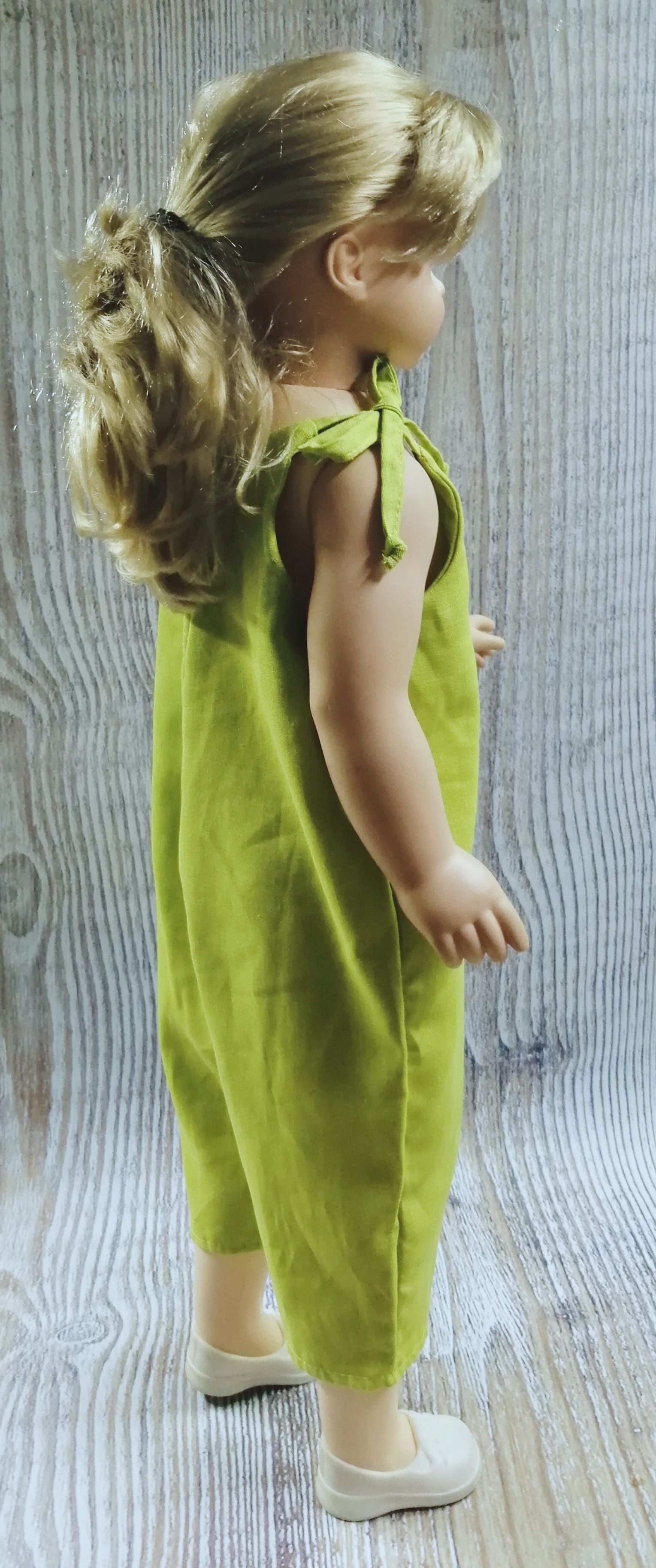 Песочник выполнен из льняной ткани. Сверху на завязках.