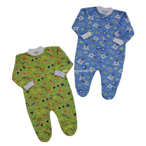 В каждой упаковке и партии расцветки и пропорция размеров может отличаться. Комбинезон с закрытыми ножками, с длинным рукавом на манжете, без воротничка, спереди на кнопочках.